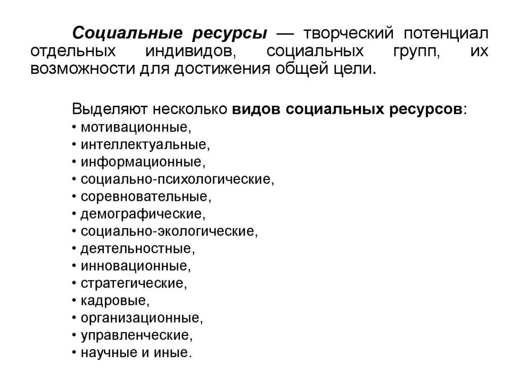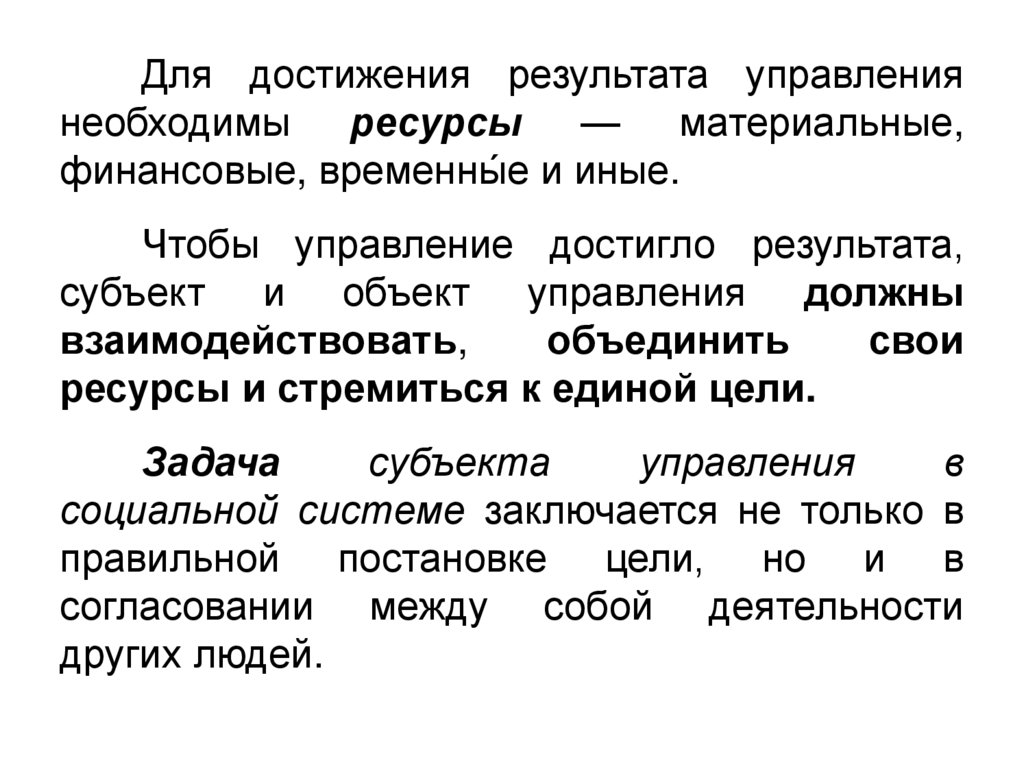Для достижения результата управлениянеобходимы ресурсы — материальные,