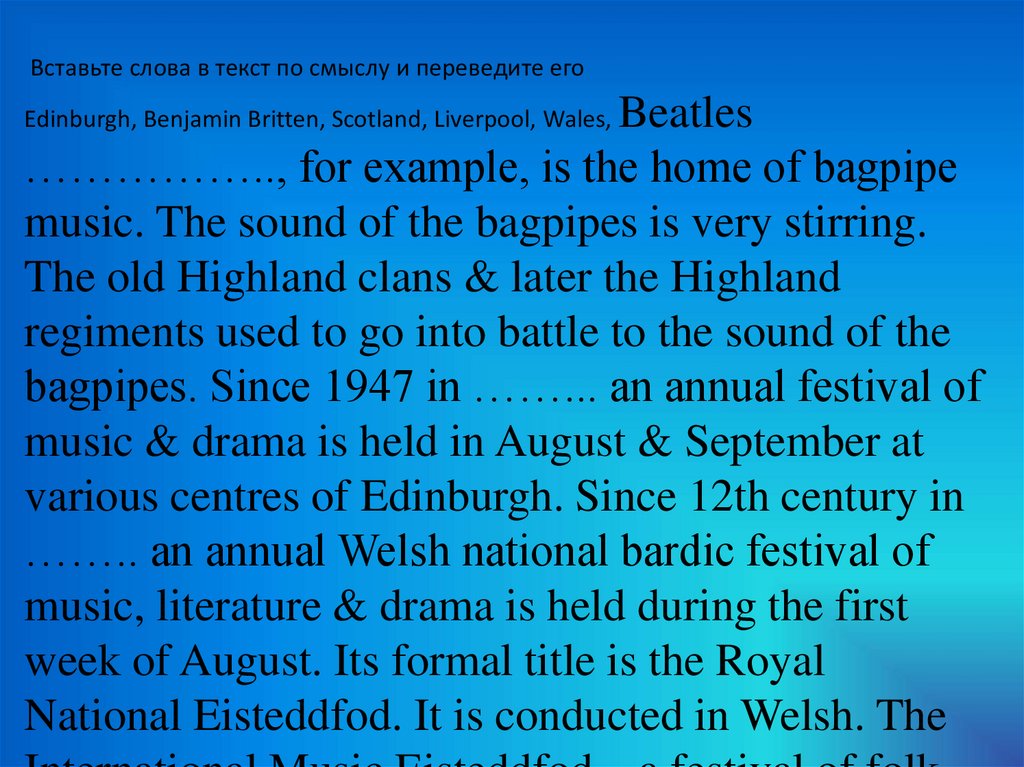 Вставьте слова в текст по смыслу и переведите егоBeatles