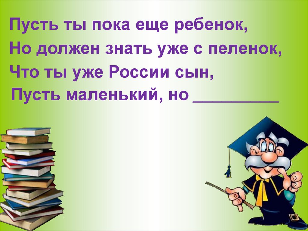 Пусть ты пока еще ребенок,Но должен знать уже с пеленок,