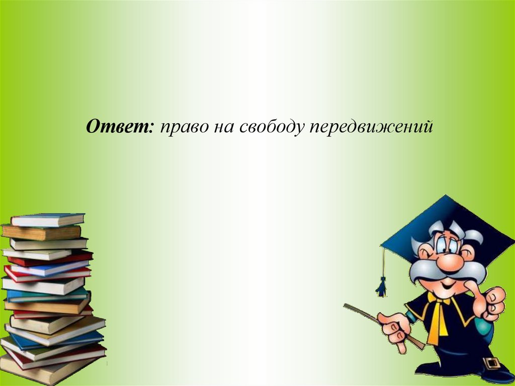 Ответ: право на свободу передвижений6. Задача 3. А.С.Пушкин «Сказка о попе и его работнике Балде» Каким правом воспользовался Балда, нанявшись на работу к попу?