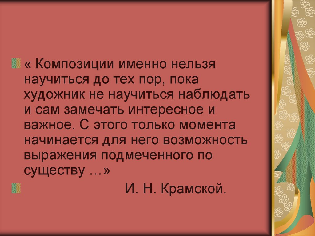 1. Выбор наиболее выразительного сюжета длякомпозиции тоже не простая задача. Один и тот