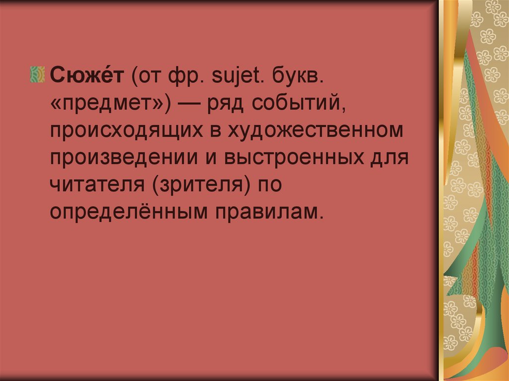 Сюже́т (от фр. sujet. букв.«предмет») — ряд событий,