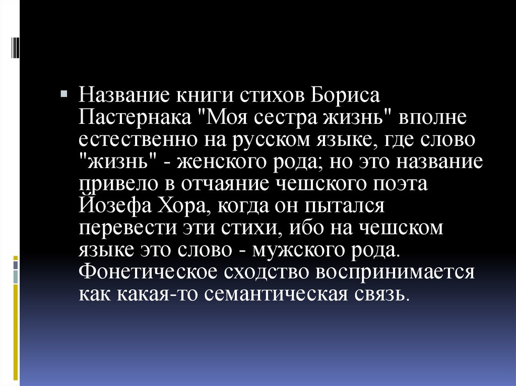 Название книги стихов БорисаПастернака "Моя сестра жизнь" вполне