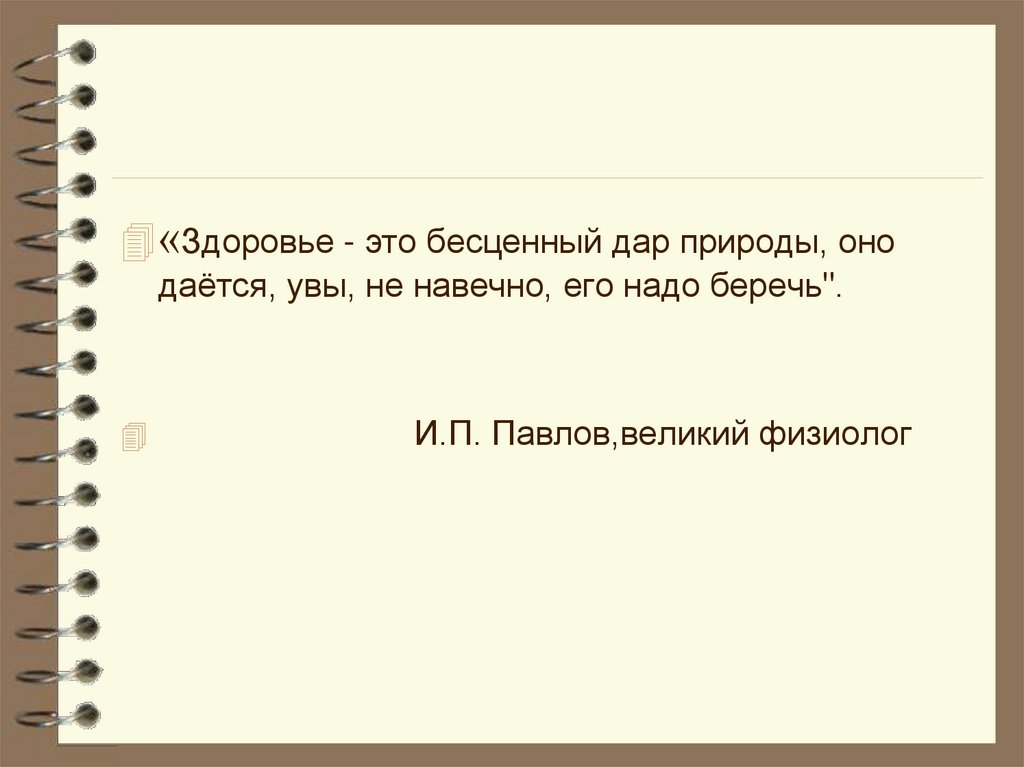 «Здоровье - это бесценный дар природы, онодаётся, увы, не навечно, его надо беречь".