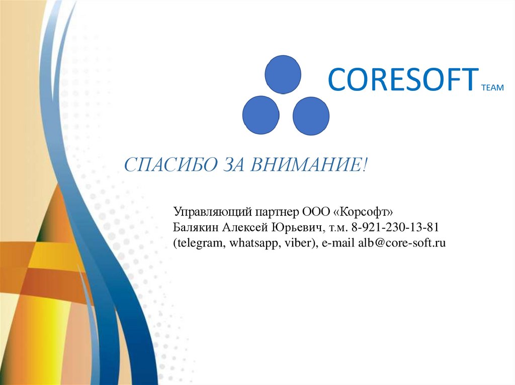 СПАСИБО ЗА ВНИМАНИЕ!Управляющий партнер ООО «Корсофт»