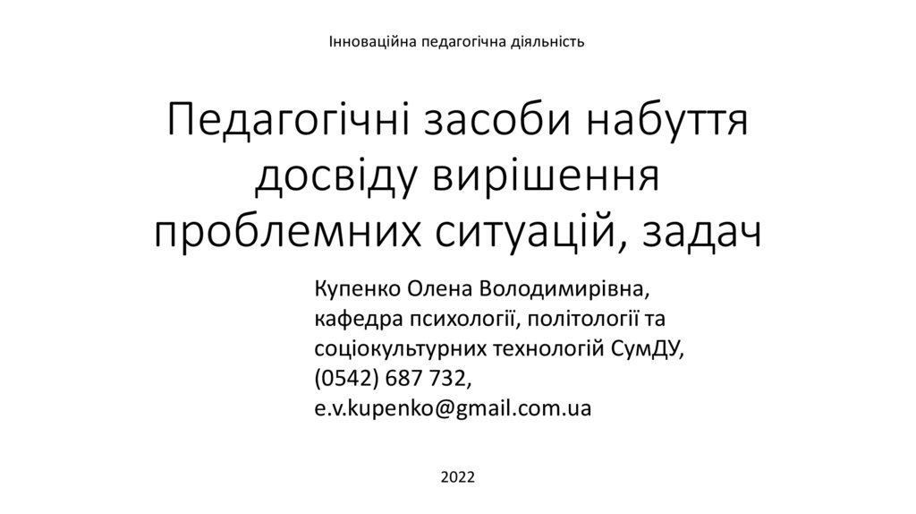 1. Педагогічні засоби набуття досвіду вирішення проблемних ситуацій, задач
