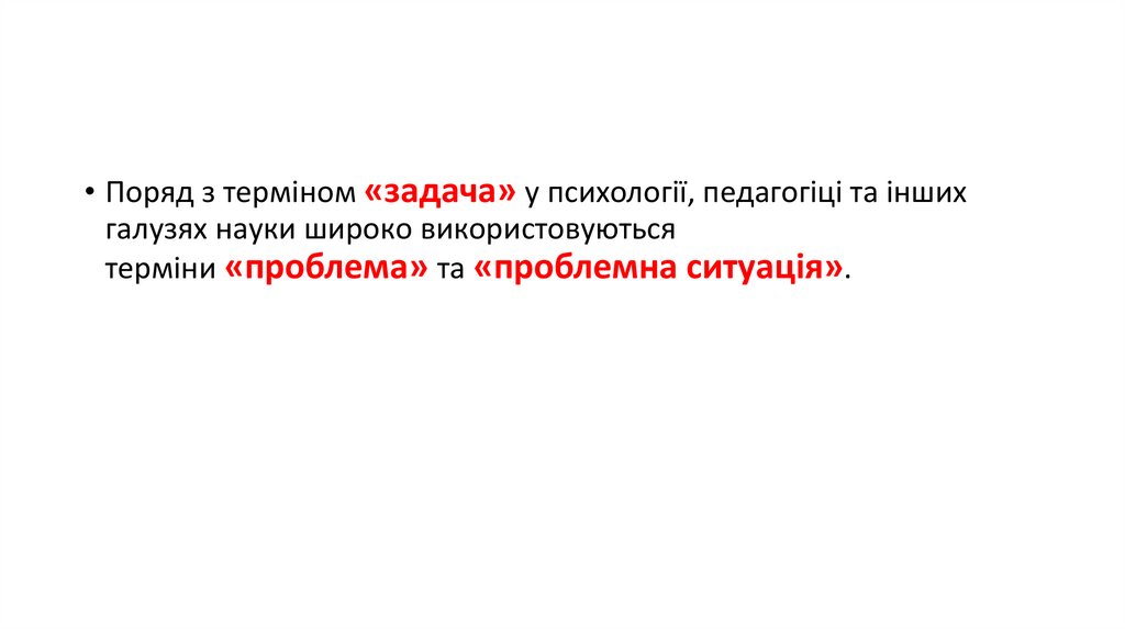 • Поряд з терміном «задача» у психології, педагогіці та іншихгалузях науки широко використовуються