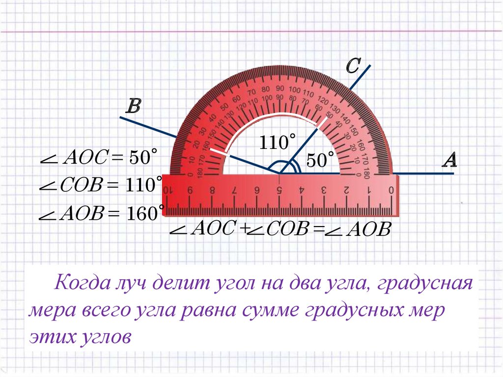 Когда луч делит угол на два угла, градусная