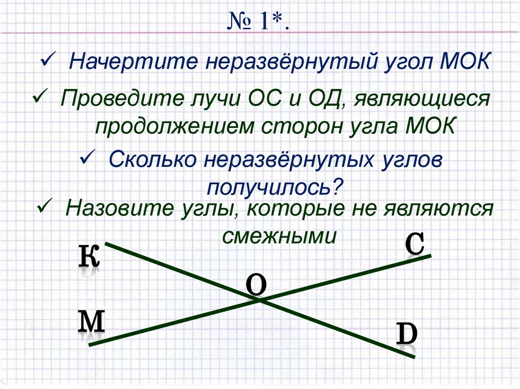 № 1*.Начертите неразвёрнутый угол МОК