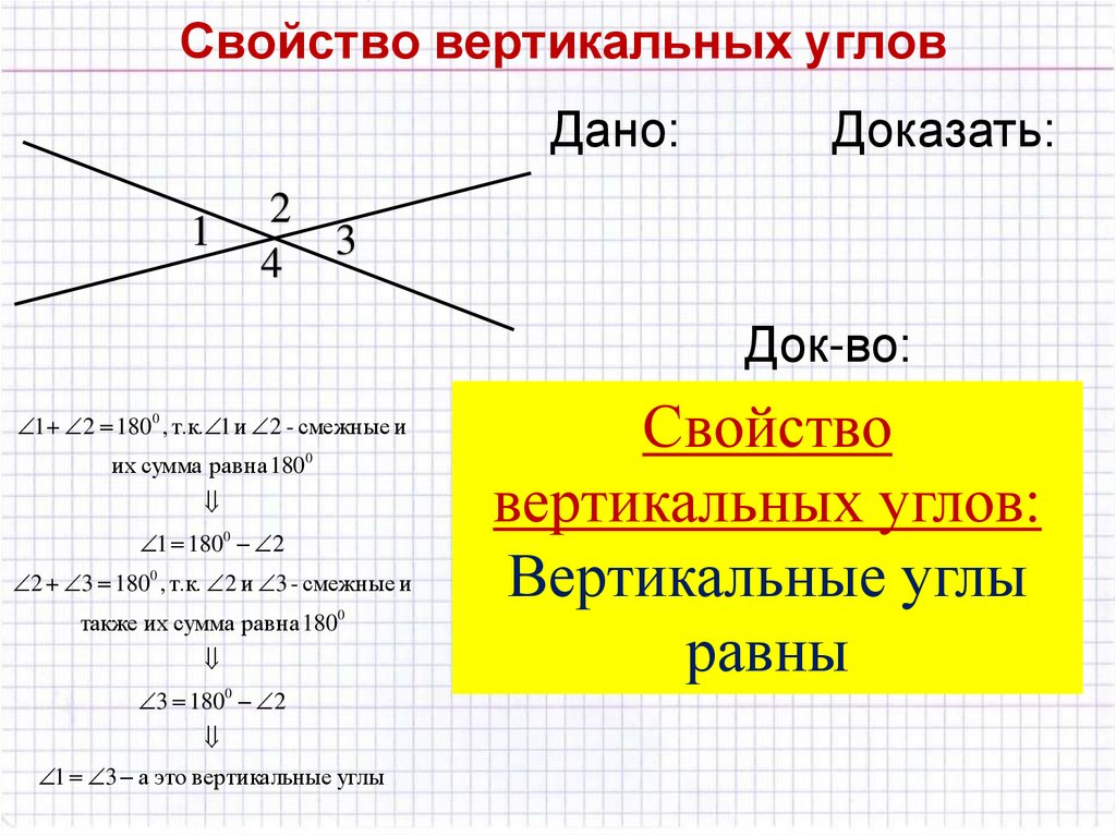 Свойство вертикальных угловДано: