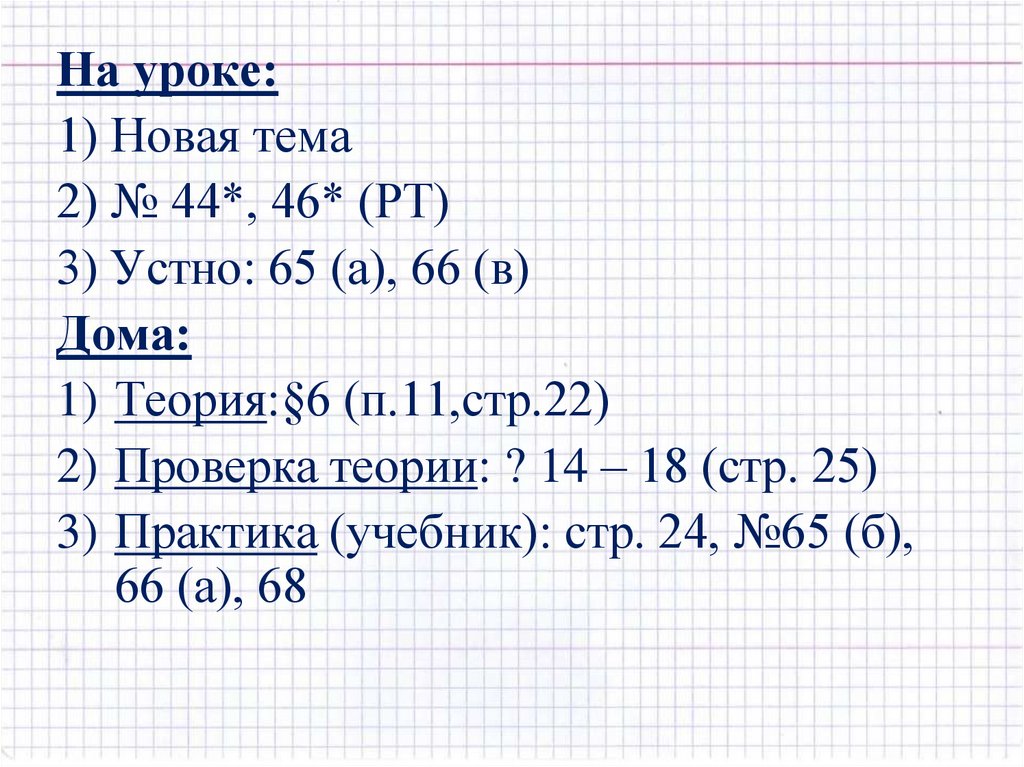 3) Практика (учебник): стр. 24, №65 (б),