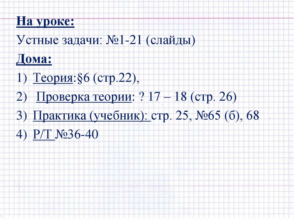 3) Практика (учебник): стр. 25, №65 (б), 68