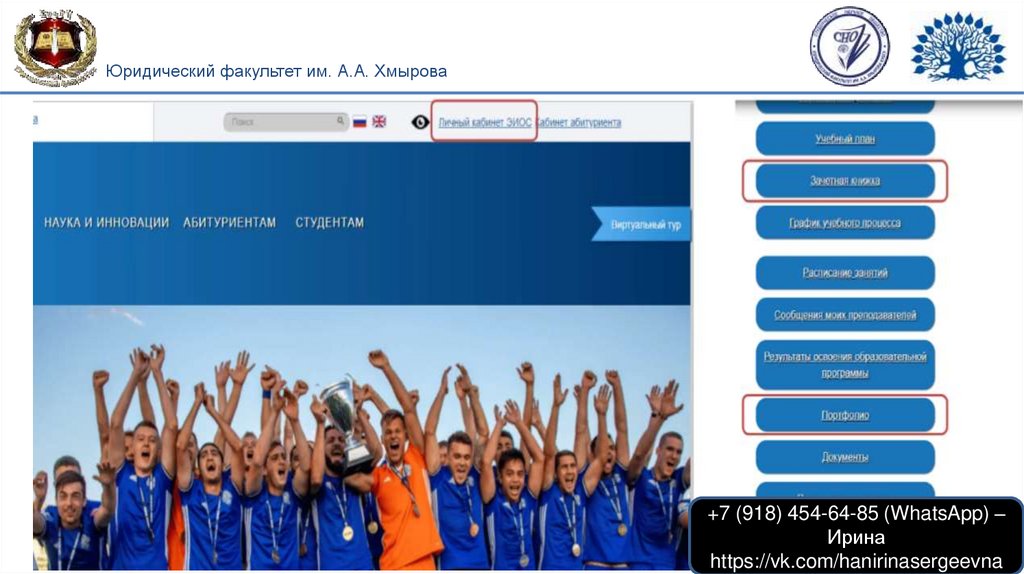 Юридический факультет им. А.А. Хмырова+7 (918) 454-64-85 (WhatsApp) –