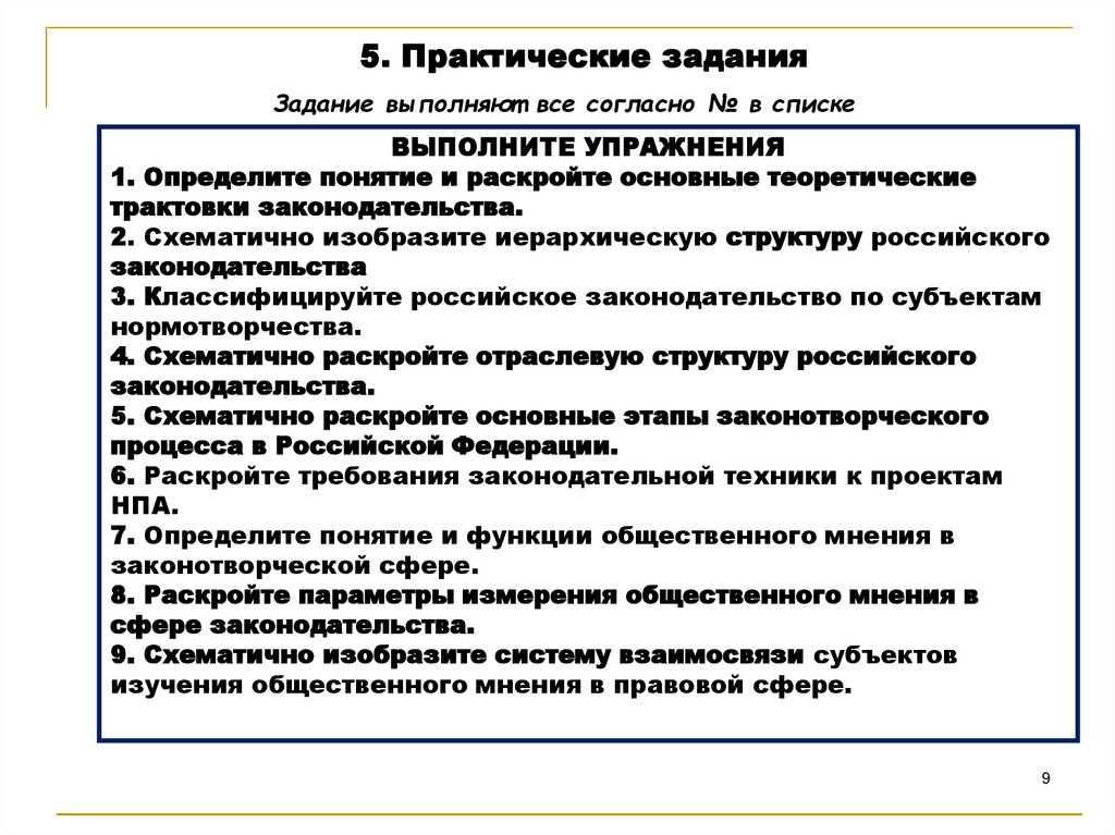 5. Практические заданияЗадание выполняют все согласно № в списке