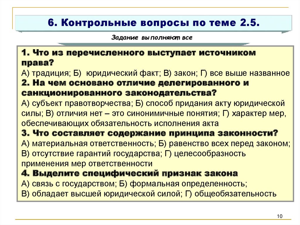 6. Контрольные вопросы по теме 2.5.Задание выполняют все