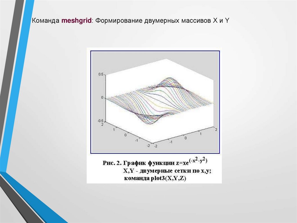 Команда meshgrid: Формирование двумерных массивов X и Y3.