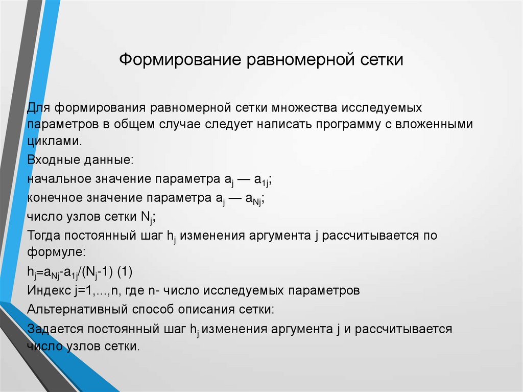 Формирование равномерной сеткиДля формирования равномерной сетки множества исследуемых