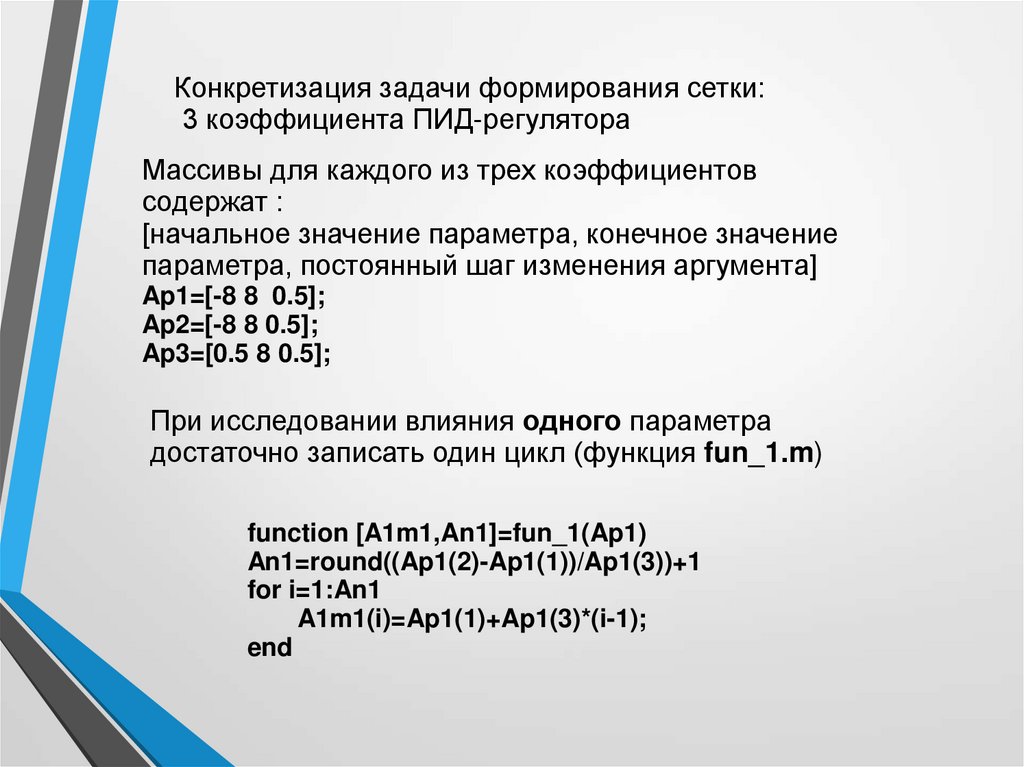 Конкретизация задачи формирования сетки:3 коэффициента ПИД-регулятора