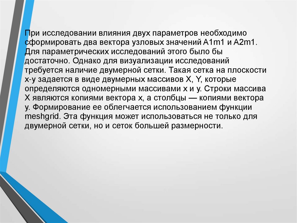 При исследовании влияния двух параметров необходимосформировать два вектора узловых значений A1m1 и A2m1.