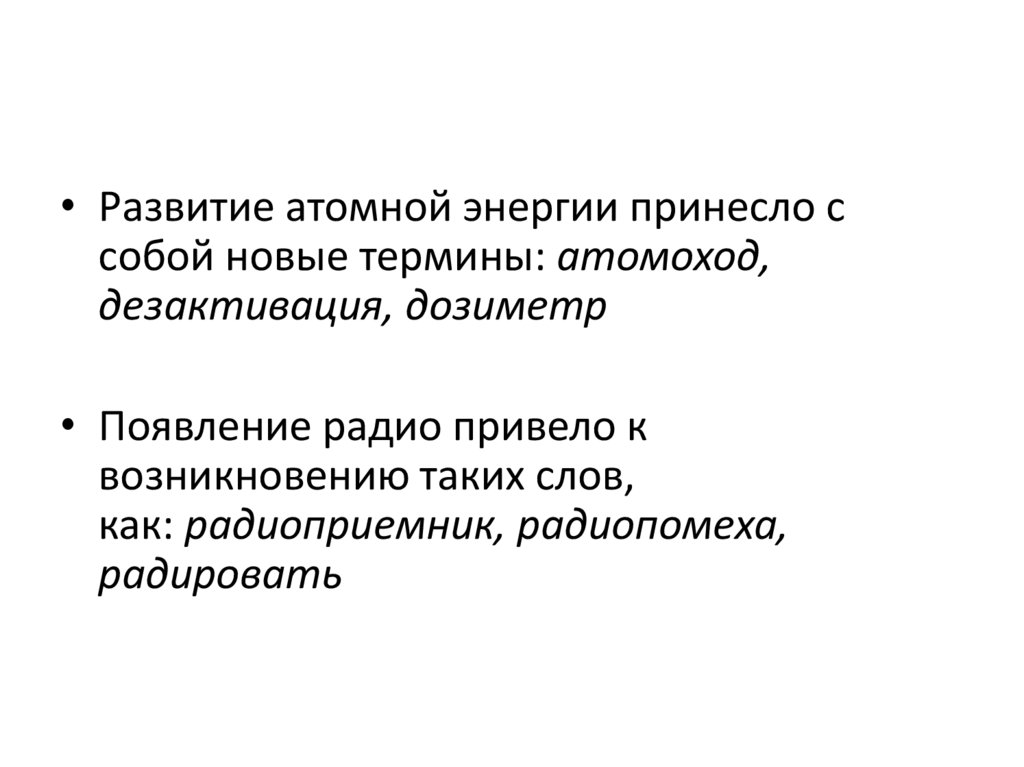 • Развитие атомной энергии принесло ссобой новые термины: атомоход,