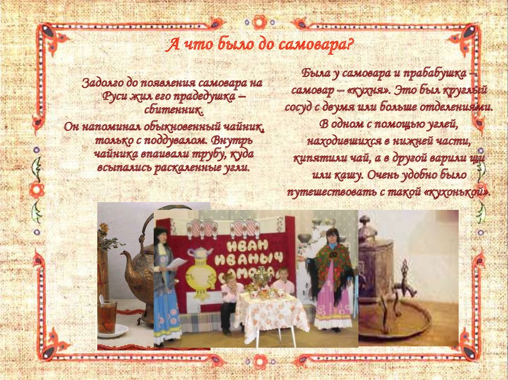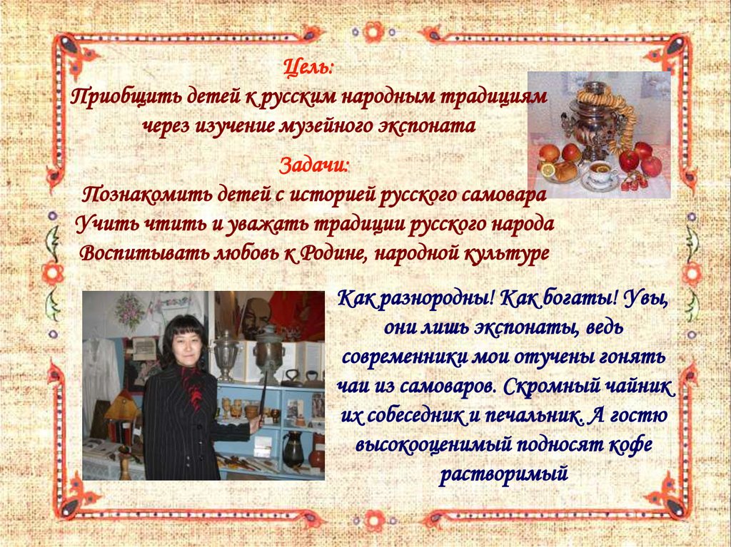 Познакомить детей с историей русского самовара
