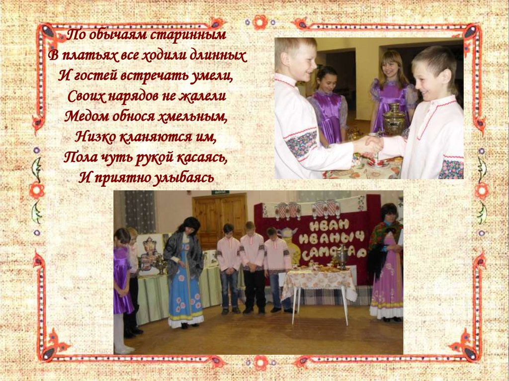 По обычаям стариннымВ платьях все ходили длинных