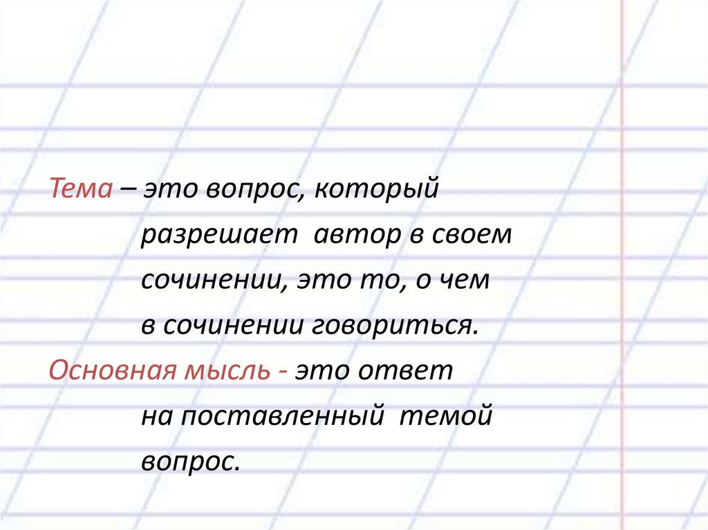 Тема – это вопрос, которыйразрешает автор в своем
