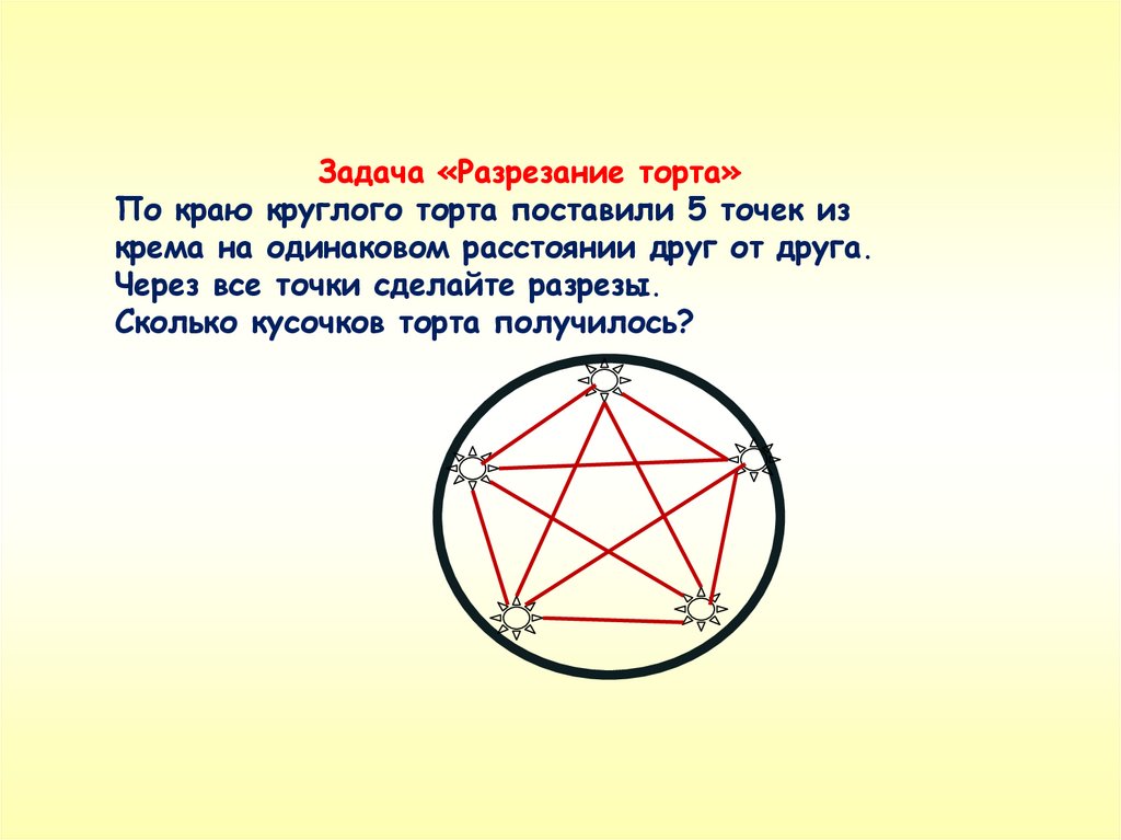 Задача «Разрезание торта»По краю круглого торта поставили 5 точек из