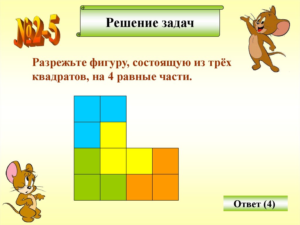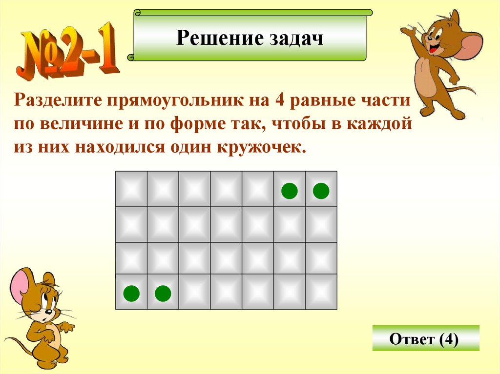 Решение задачРазделите прямоугольник на 4 равные части