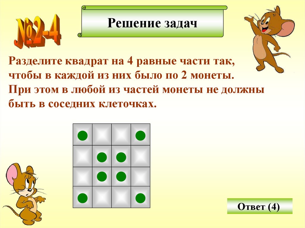 квадратов, на 4 равные части.