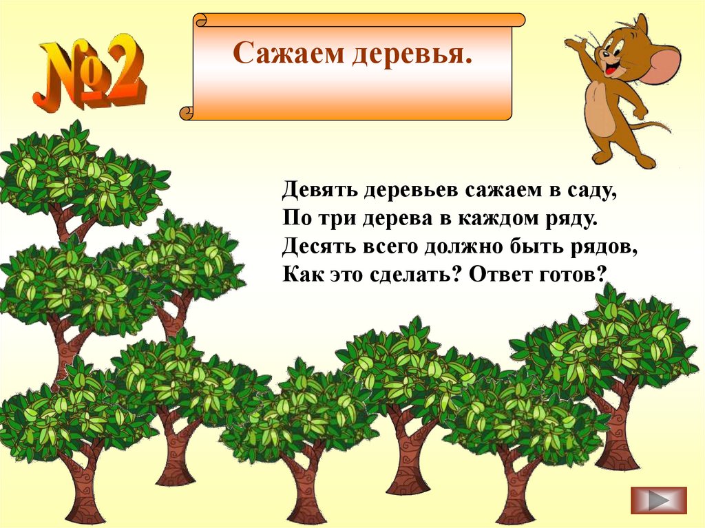 Сажаем деревья.Девять деревьев сажаем в саду,