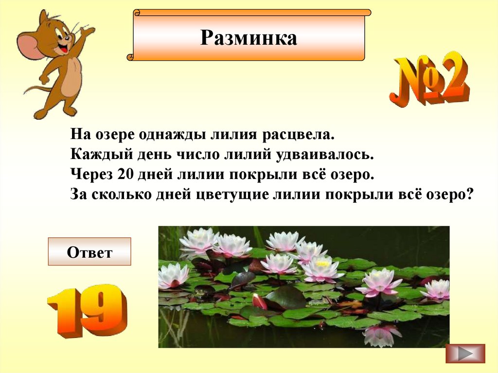 Каждый день число лилий удваивалось.