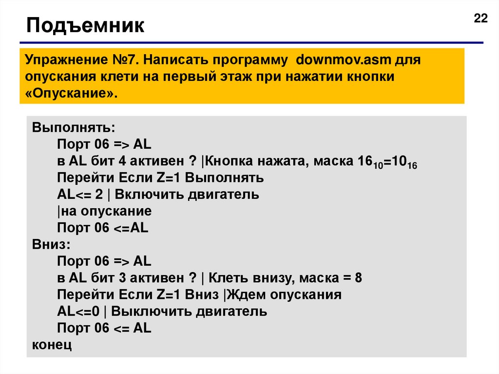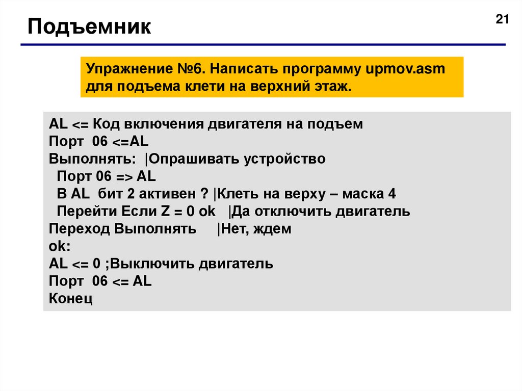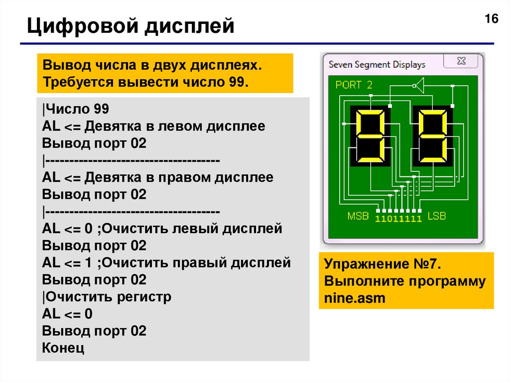 Вывод в порт 01 |Вывести код в порт