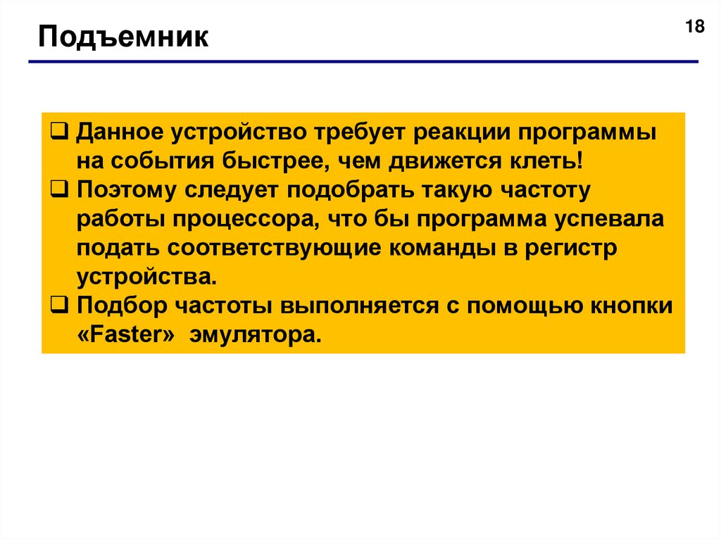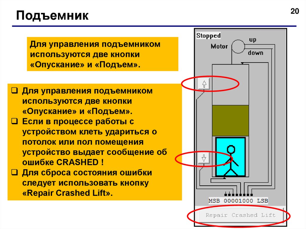 работой лифта нажатием кнопок «Подъем» и