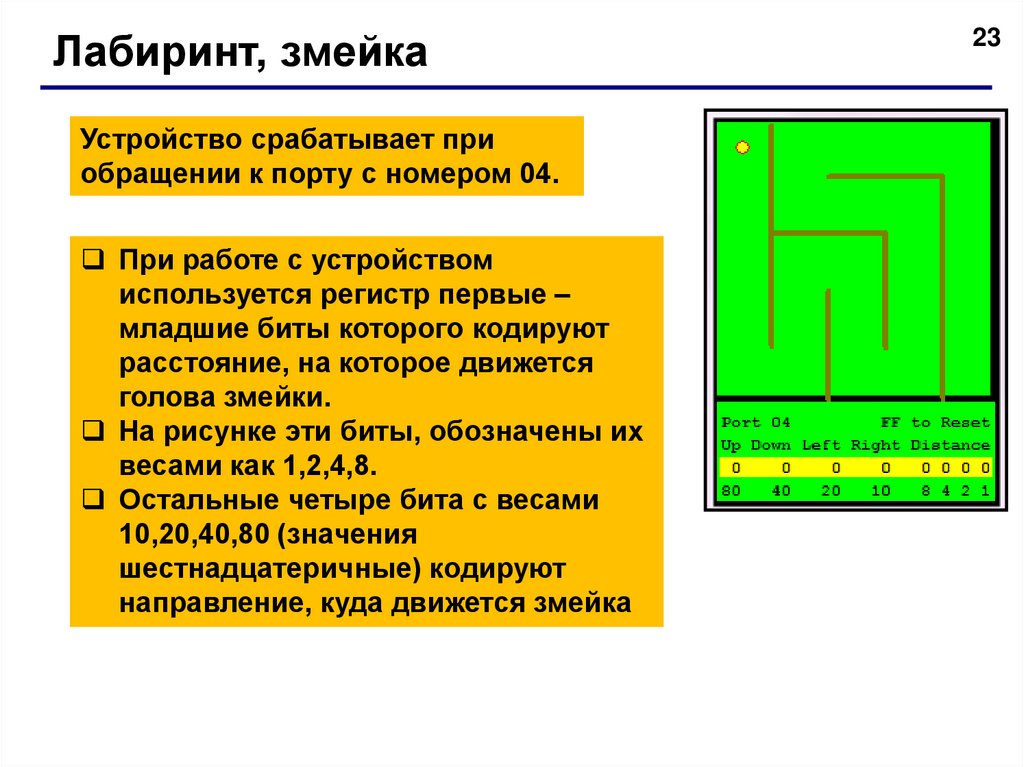 движением змейки в лабиринте.