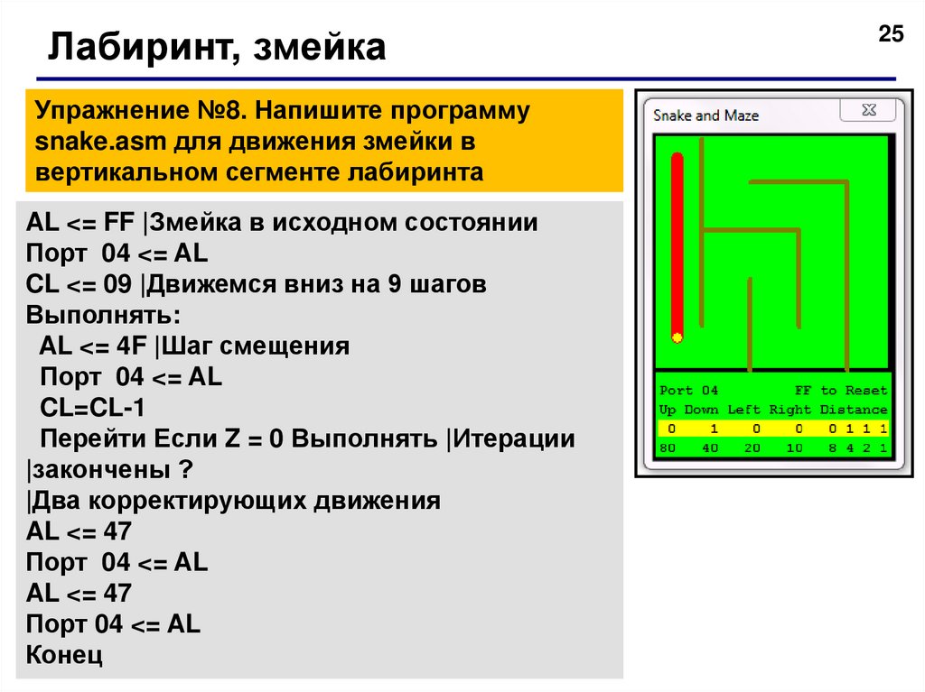Лабиринт, змейкаУпражнение №8. Напишите программу
