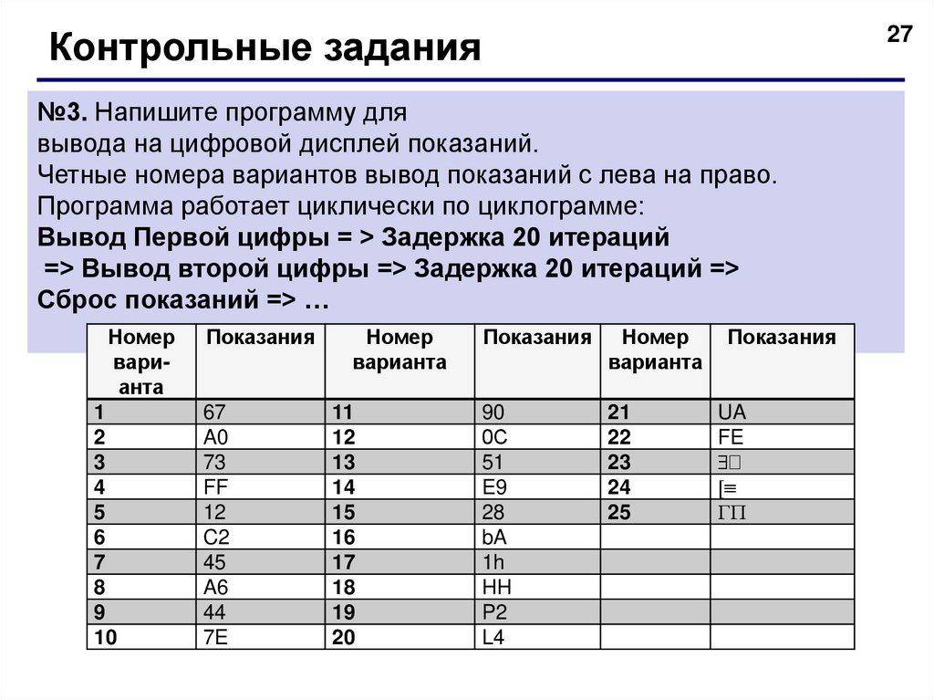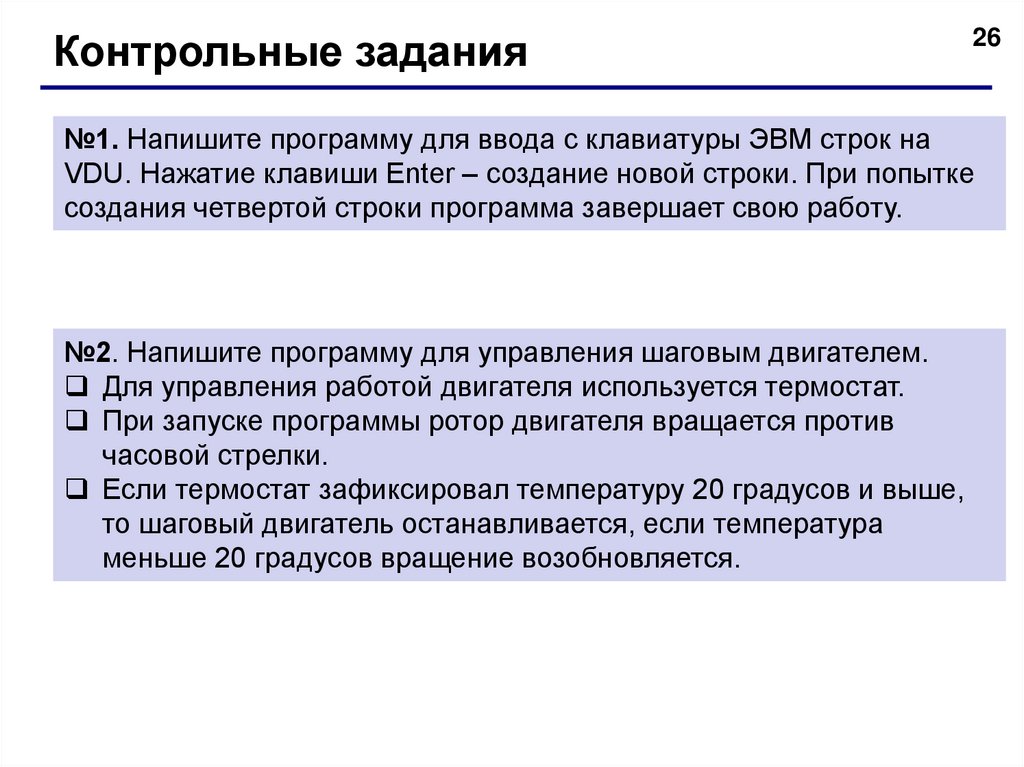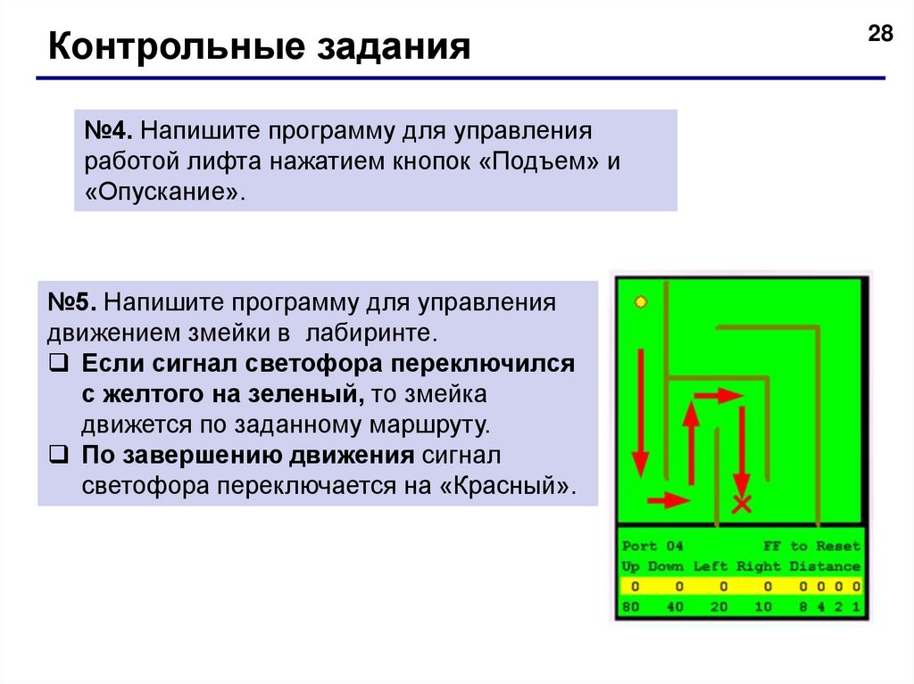 Контрольные задания№4. Напишите программу для управления