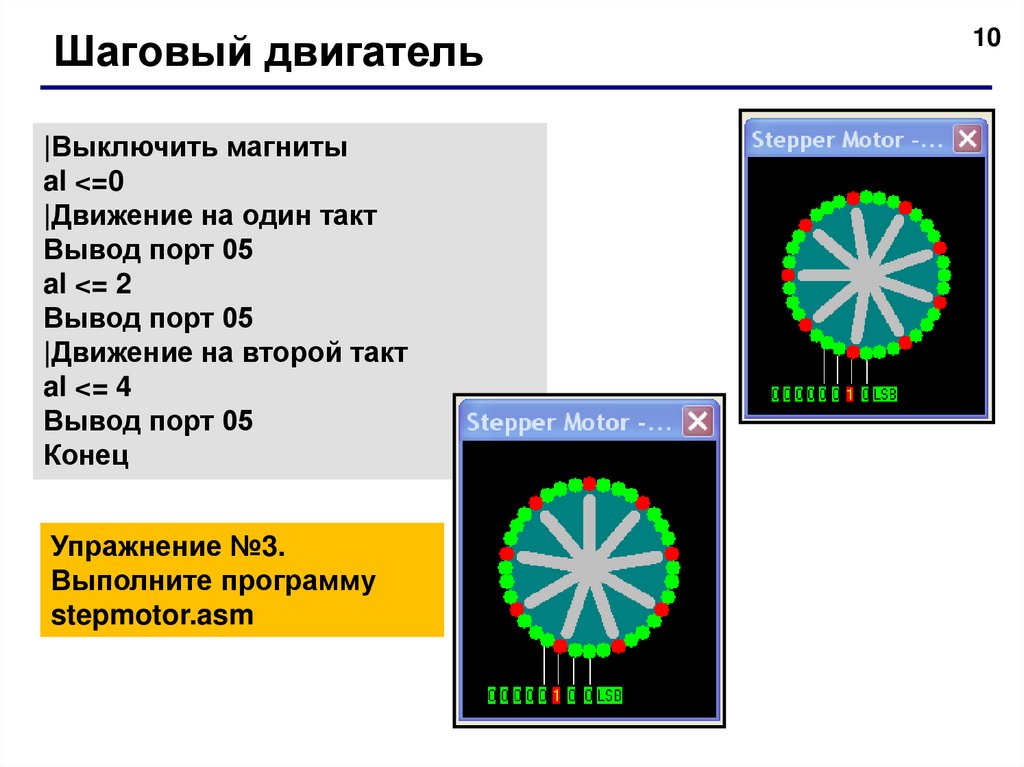 №2. Напишите программу для управления шаговым двигателем.