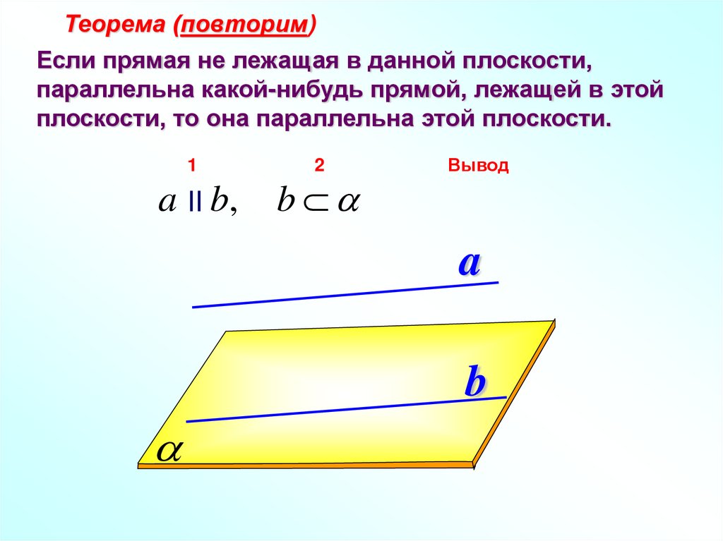 Теорема (повторим)Если прямая не лежащая в данной плоскости,