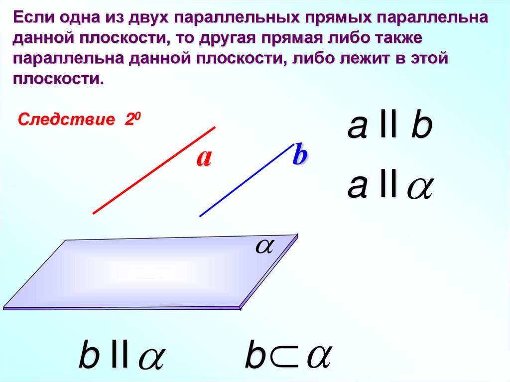 4) Одна их двух параллельных прямыхпараллельна некоторой плоскости. Можно