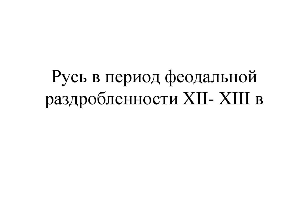 1. Русь в период феодальной раздробленности XII- XIII в