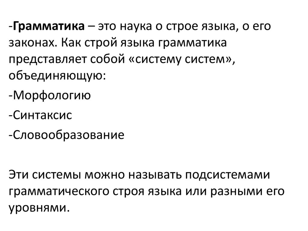-Грамматика – это наука о строе языка, о егозаконах. Как строй языка грамматика