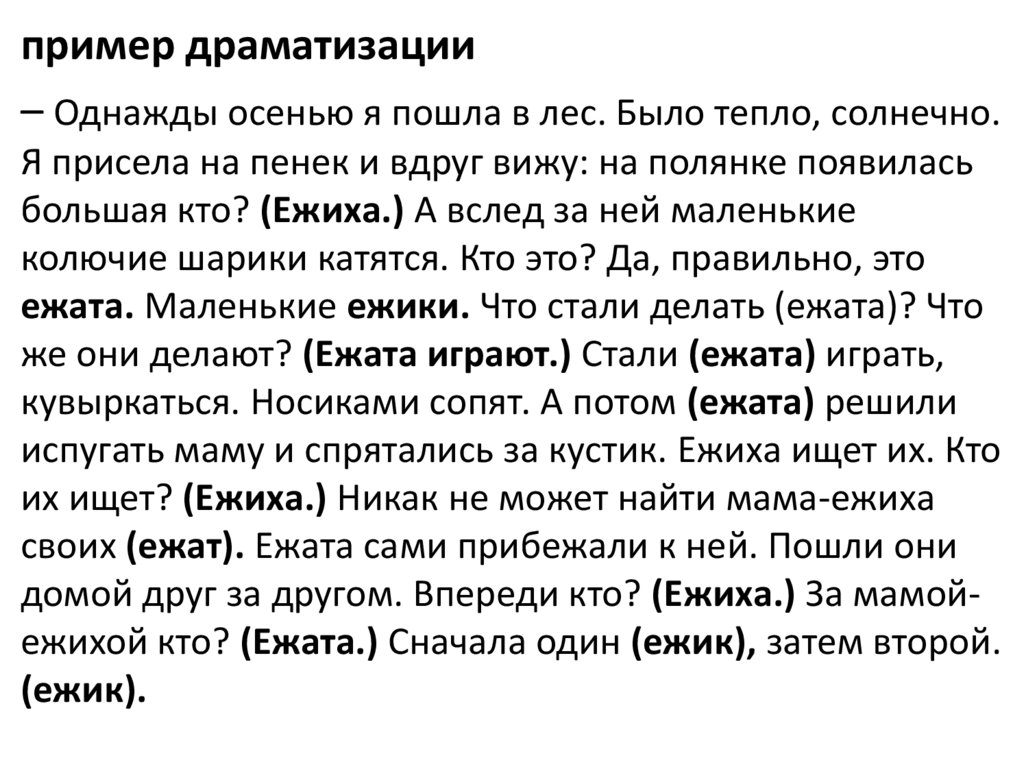 пример драматизации– Однажды осенью я пошла в лес. Было тепло, солнечно.