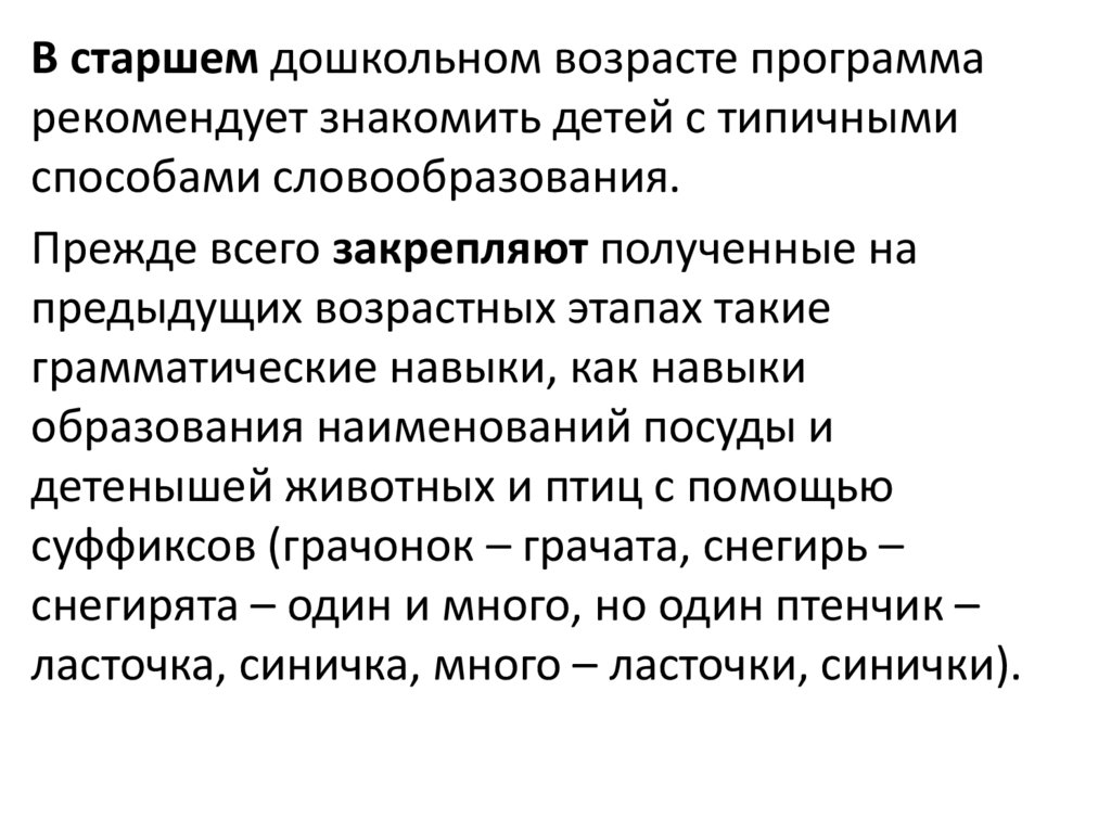 В старшем дошкольном возрасте программарекомендует знакомить детей с типичными