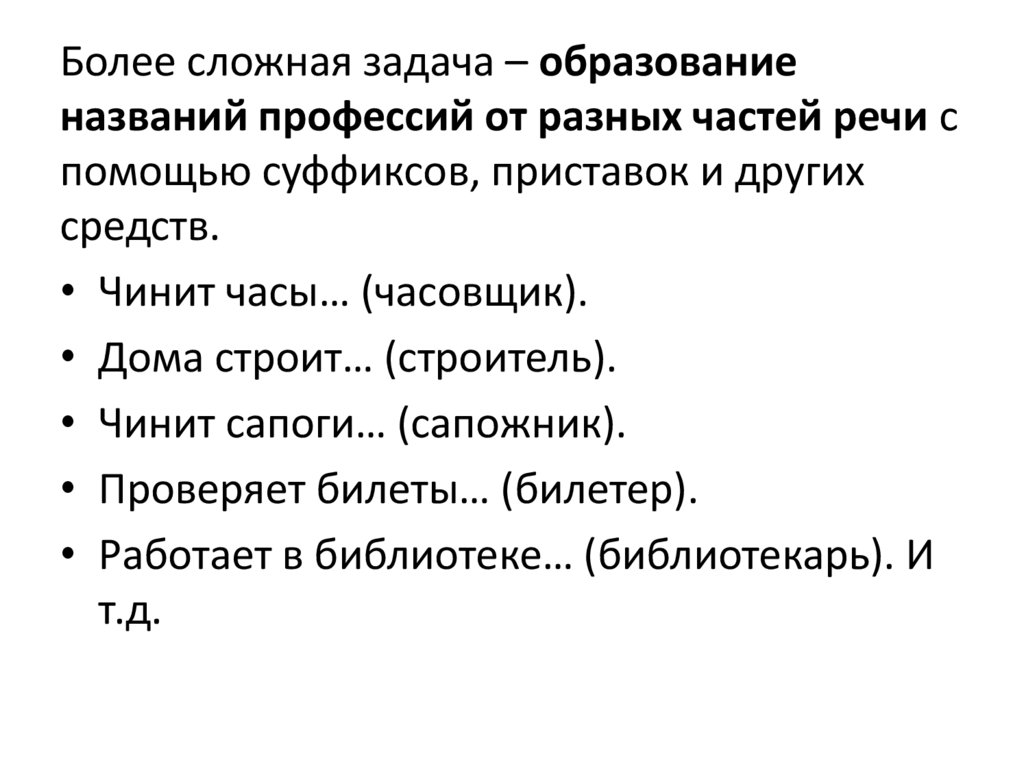 Более сложная задача – образованиеназваний профессий от разных частей речи с