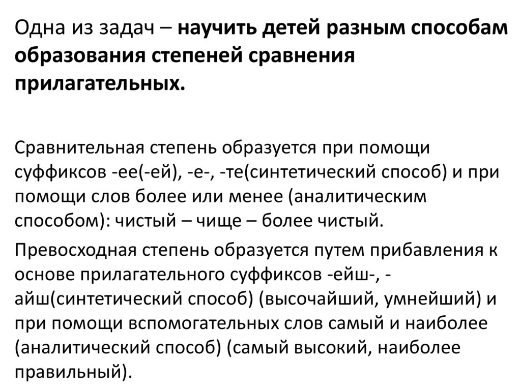 Одна из задач – научить детей разным способамобразования степеней сравнения