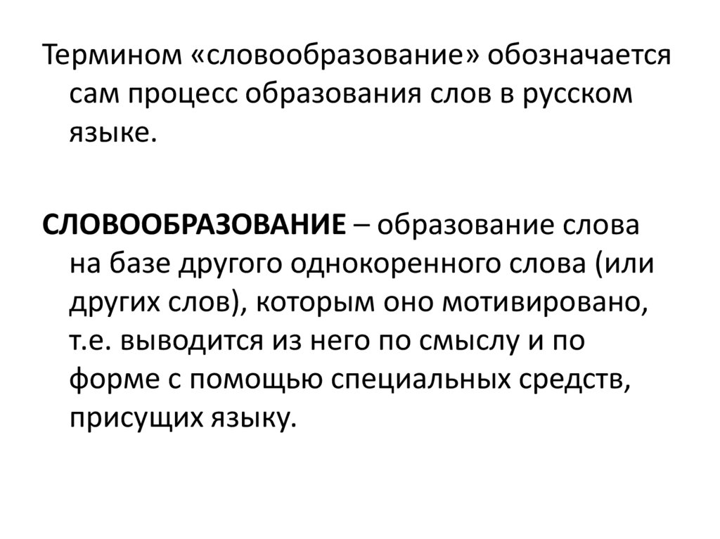 Термином «словообразование» обозначаетсясам процесс образования слов в русском