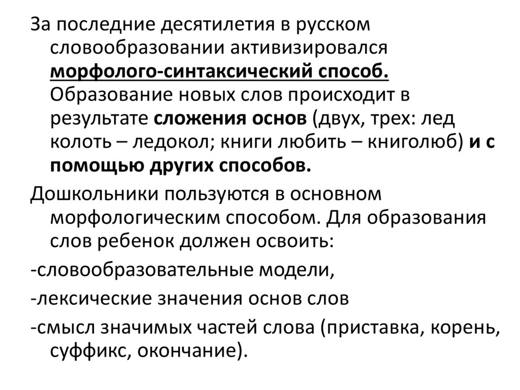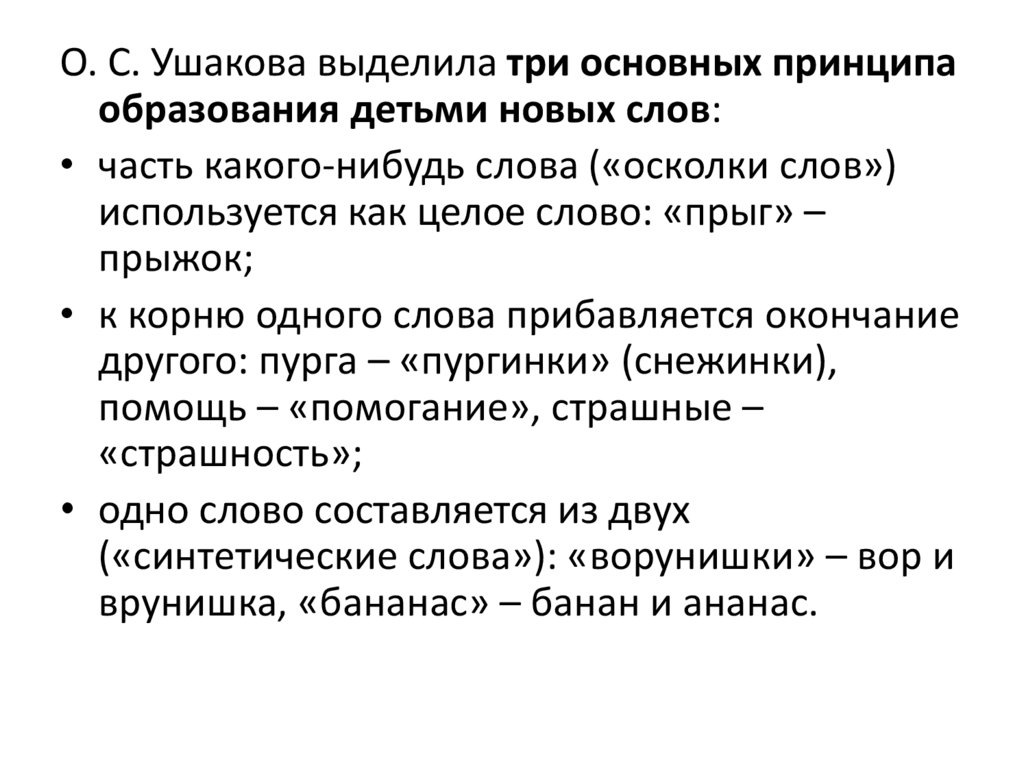 О. С. Ушакова выделила три основных принципаобразования детьми новых слов:
