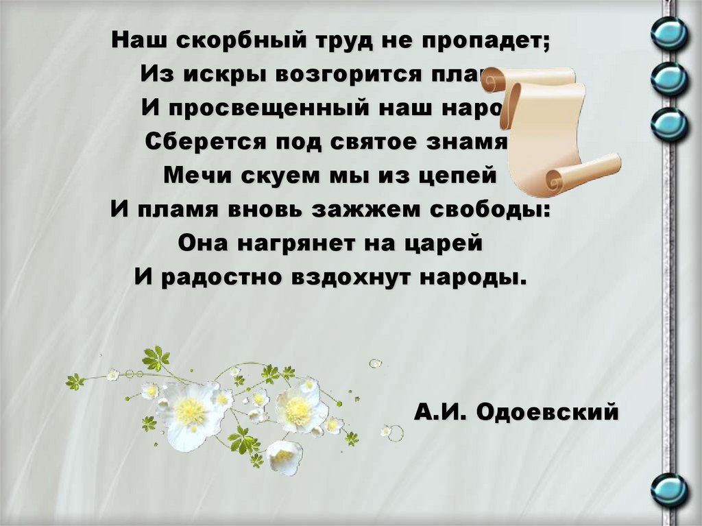 Наш скорбный труд не пропадет;Из искры возгорится пламя,