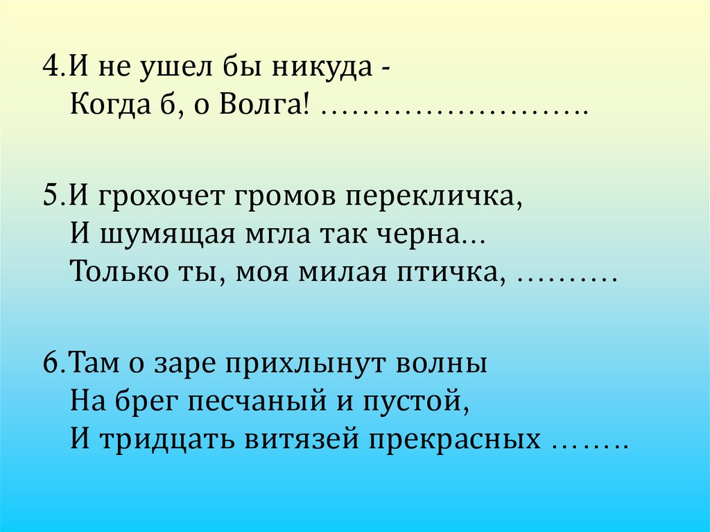 4.И не ушел бы никуда Когда б, о Волга! ……………………..5.И грохочет громов перекличка,